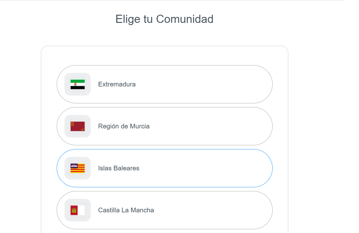 Luego el tercer paso es muy sencillo, elige la comunidad donde te encuentras. Elige Islas Baleares.